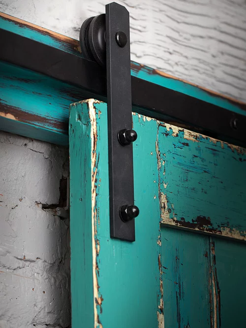 Амбарные двери – это дверные полотна на амбарном механизме. Дверное полотно сдвигается параллельно стене на стальной направляющей – рельсе. Два подвеса с роликом надежно фиксируют дверь на направляющей. Ограничители (стопы), установленные по краям рельсы создают границы для хода дверного полотна, предотвращая его падение.