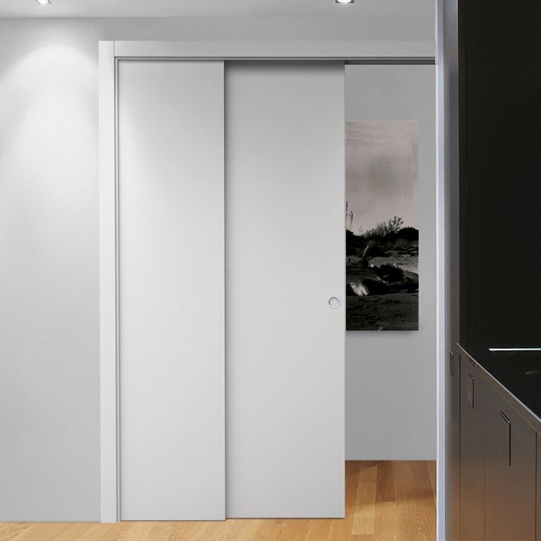 Позволяет сдвинуть двустворчатую раздвижную дверь в одну стену, значительно экономя пространство.