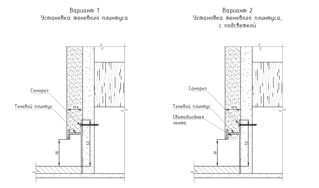 - Тип плинтуса: Скрытого монтажа